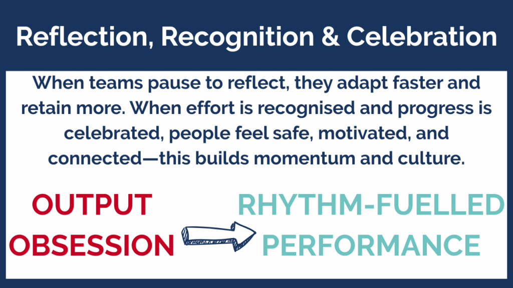 🧠 Neuroscience Insight: When teams pause to reflect, they adapt faster and retain more. When effort is recognised and progress is celebrated, people feel safe, motivated, and connected—this builds momentum and culture.